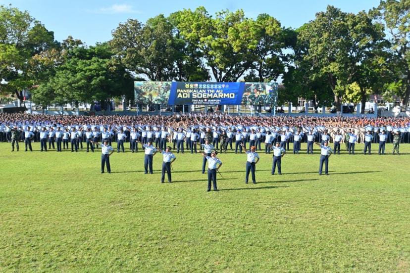 MABES TNI, JAKARTA, Komandan Pangkalan TNI Angkatan Udara (Lanud Adi Soemarmo Marsma TNI Bambang Juniar Djatmiko, S.Sos., M.M memimpin apel luar biasa yang di ikuti oleh seluruh personel Lanud Adi Soemarno dan siswa di lapangam dirgantara, Selasa (26/8/2025).