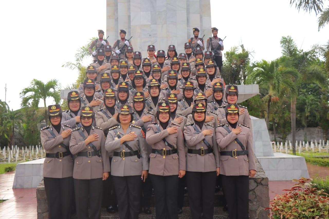 Jajaran Polwan Polda Lampung melaksanakan kegiatan ziarah dan tabur bunga di Taman Makam Pahlawan (TMP) pada Kamis, (28/8/2025).