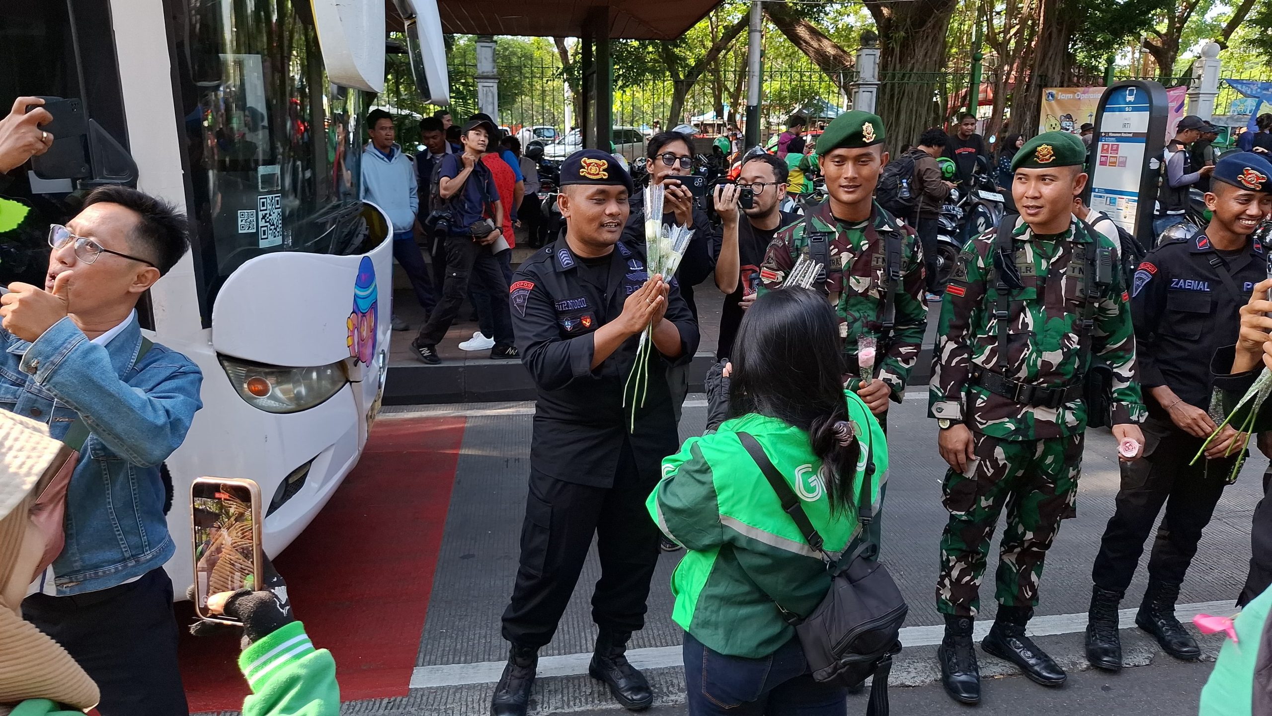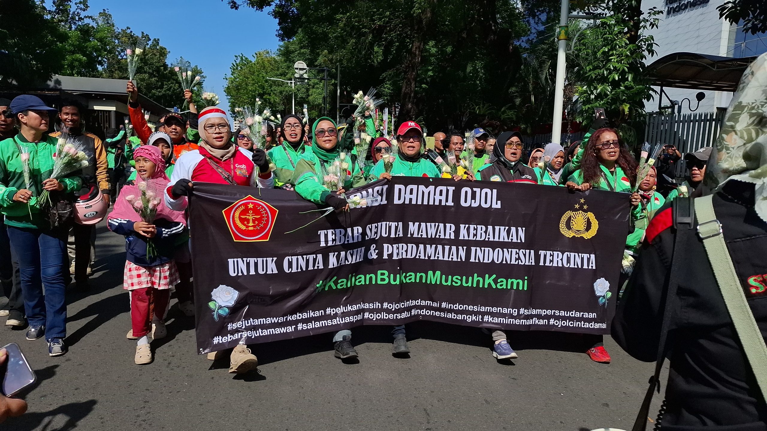 Bagikan Ribuan Mawar Untuk Anggota Polri dan TNI di Monas, Komunitas Ojol Tidak Mau Terprovokasi