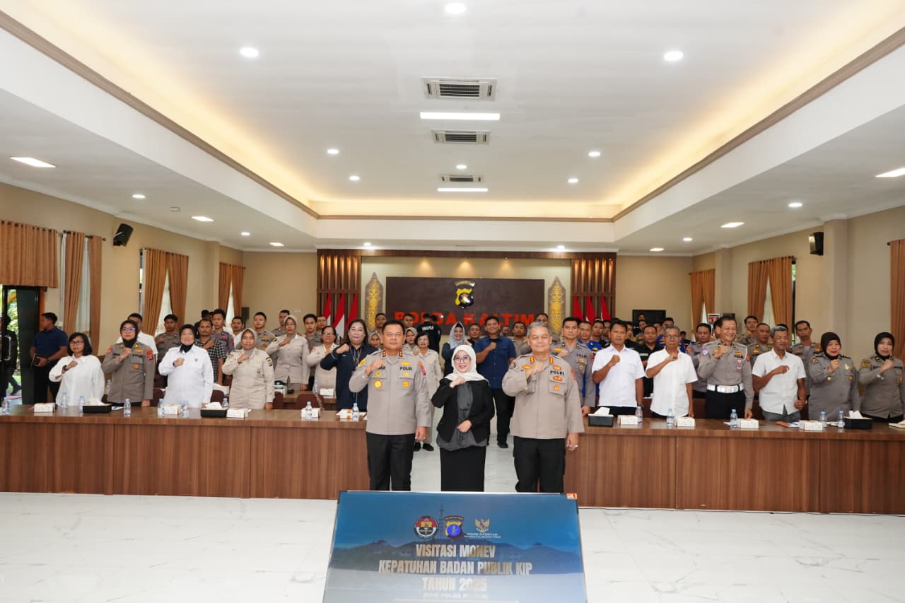 BALIKPAPAN, Guna meningkatkan akuntabilitas dan kepatuhan sebagai Badan Publik, Polda Kaltim menggelar kegiatan Visitasi Monev oleh Komisi Informasi Pusat (KIP) Republik Indonesia Tahun 2025 di Gedung Mahakam, Polda Kaltim, pada Rabu (3/9/2025).