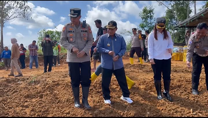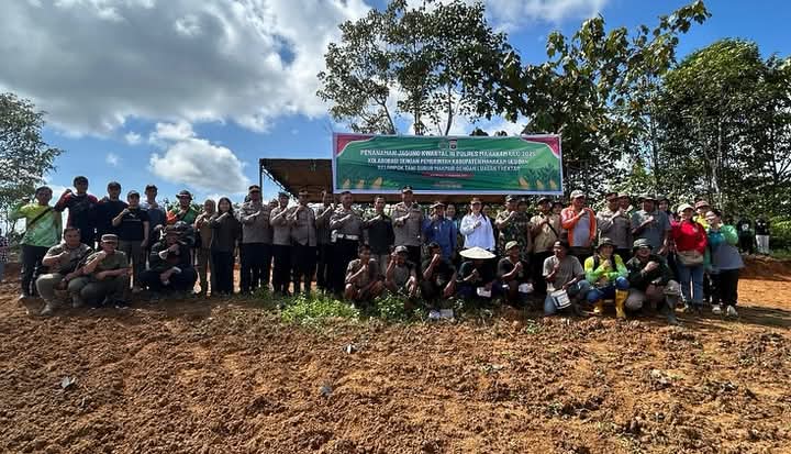MAHAKAM ULU, Polres Mahakam Ulu bersama Pemerintah Kabupaten Mahakam Ulu dan Kelompok Tani Subur Makmur melaksanakan kegiatan penanaman jagung di lahan seluas 1 hektar di wilayah Ujohbilang, Kamis (4/9/2025).