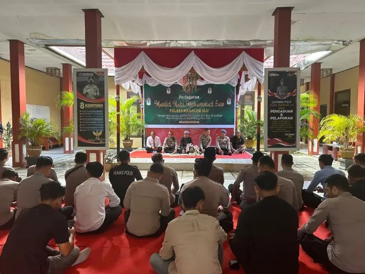 MAHULU KALTIM, Dalam rangka memperingati Maulid Nabi Muhammad SAW 1447 H/2025 M, Polres Mahakam Ulu mengadakan kegiatan doa bersama di Mapolres Mahakam Ulu, Selasa (9/9/2025).