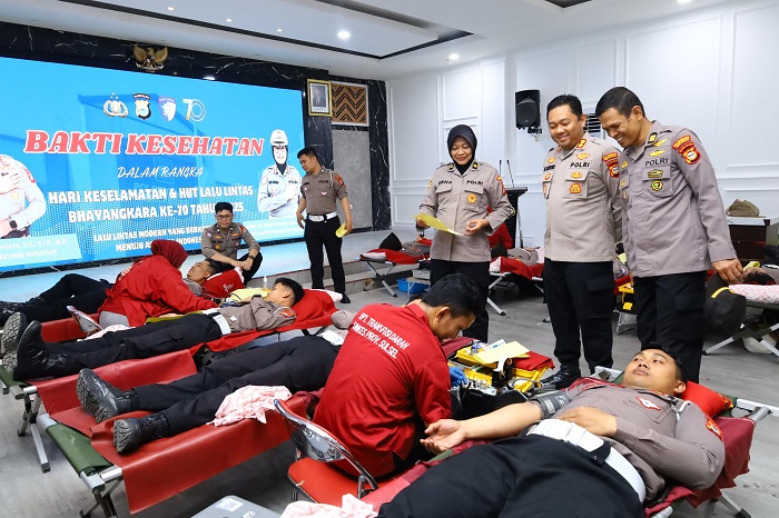 MAKASSAR, Satuan Lalulintas (Satlantas) Polrestabes Makassar menggelar kegiatan bakti kesehatan berupa donor darah dalam rangka memperingati Hari Keselamatan dan HUT Lalu Lintas ke-70 tahun.