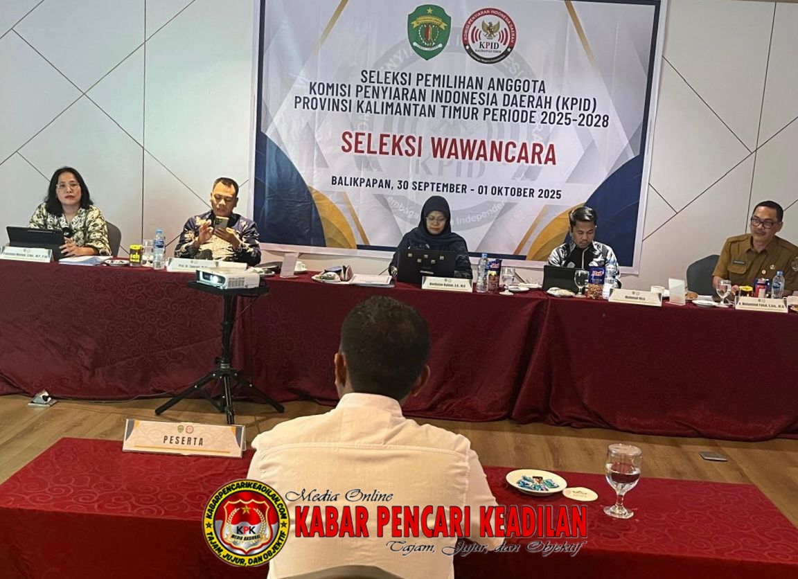 BALIKPAPAN, Proses seleksi calon anggota Komisi Penyiaran Indonesia Daerah (KPID) Provinsi Kalimantan Timur periode 2025–2028 kini memasuki tahap wawancara. Sebanyak 43 peserta mengikuti tahapan ini setelah sebelumnya melewati ujian berbasis Computer Assisted Test (CAT) untuk pengetahuan umum dan psikotes.