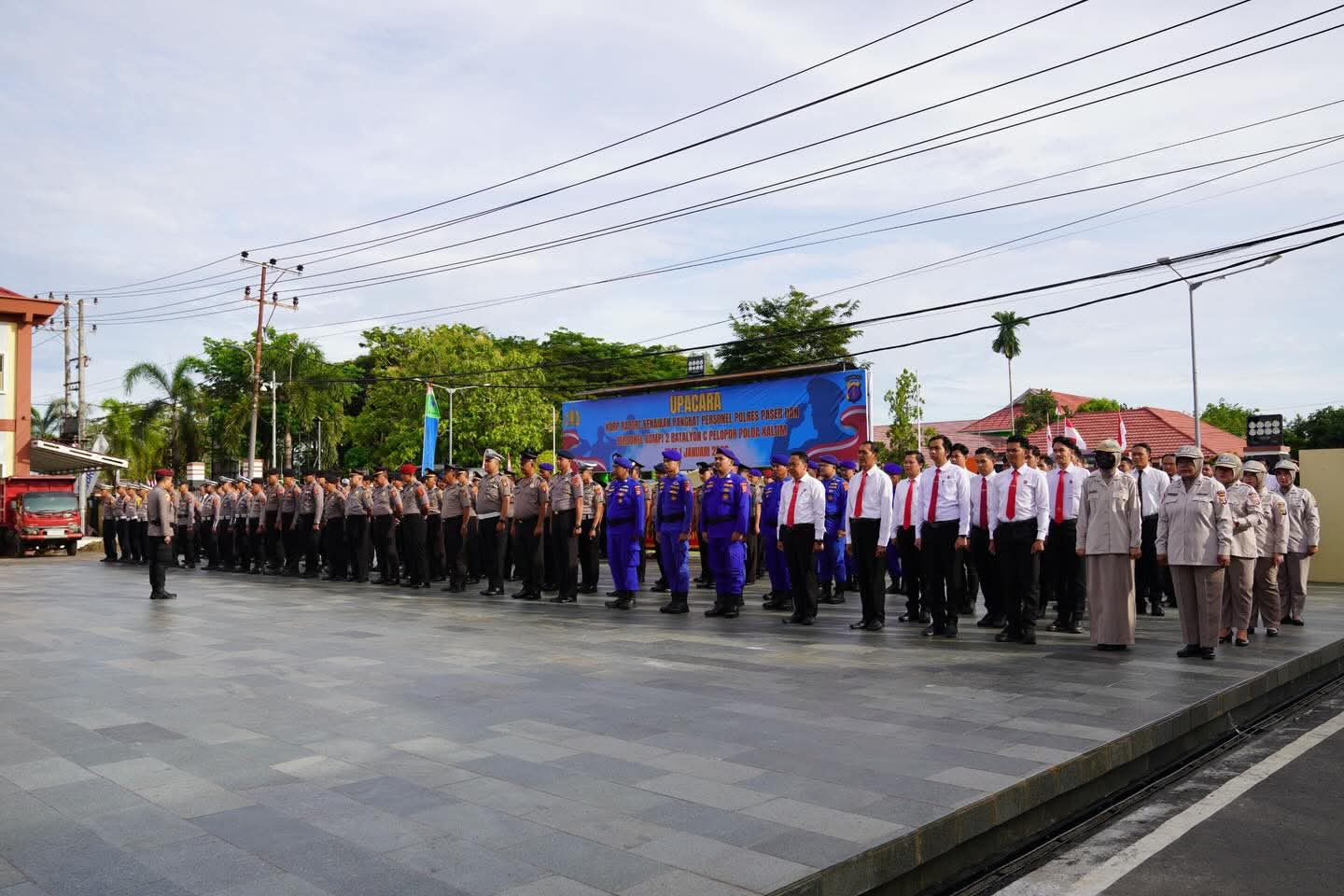 Upacara yang dimulai pada pukul 08.00 WITA ini dihadiri oleh sejumlah pejabat penting, termasuk Waka Polres Paser KOMPOL Anton Saman, S.H., M.M., para PJU Polres Paser, Kapolsek Jajaran, Danki Brimob Kompi 2 Batalyon C Pelopor AKP Erwan Darmawan, S.A.P., M.H., serta Bhayangkari Cabang Paser yang turut memberikan dukungan dalam acara tersebut.