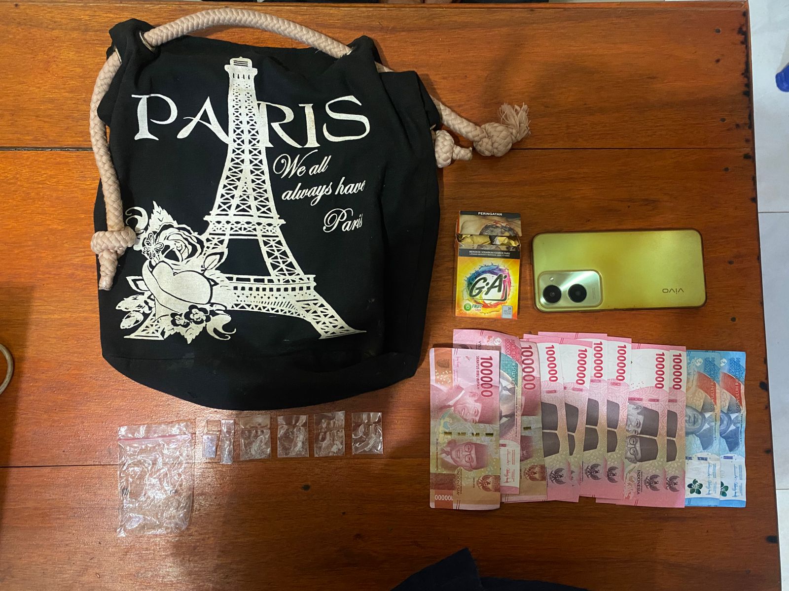 “Dari tangan tersangka, kami menyita enam paket sabu dengan berat bruto 1,19 gram. Selain itu turut diamankan satu unit handphone, uang tunai, plastik pembungkus, serta perlengkapan lain yang diduga digunakan untuk aktivitas peredaran narkotika,” ujar AKP Syarifuddin.