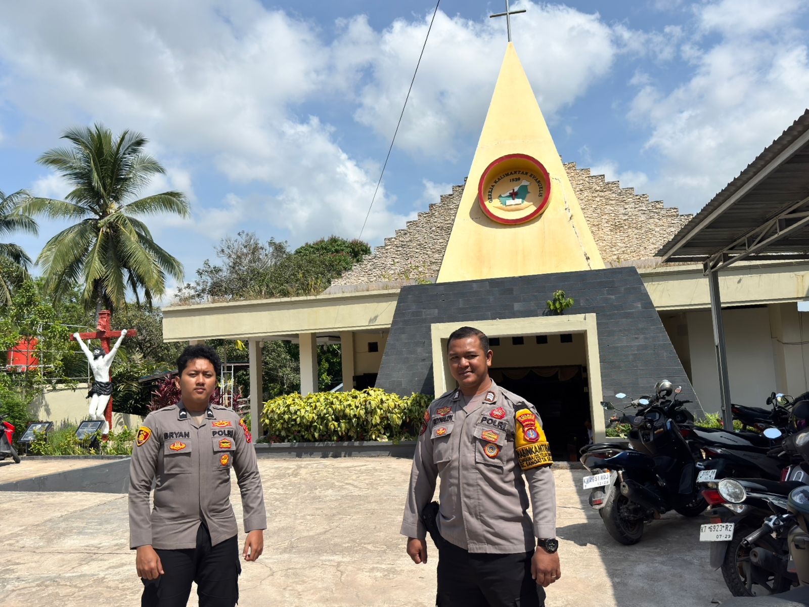 Dua personel yang diturunkan, Brigpol Reynaldi P. dan Bripda Oktavio Bryan, melakukan pemantauan langsung serta sambang ke lokasi ibadah. Selain memastikan situasi tetap aman dan kondusif, petugas juga aktif berinteraksi dengan pengurus gereja dan jemaat guna menyampaikan imbauan kamtibmas secara humanis namun tegas.