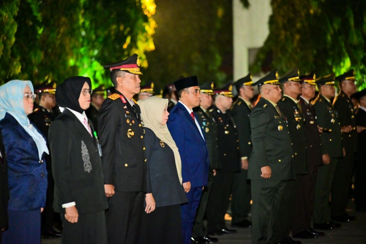 Dalam suasana hening penuh penghormatan, para peserta upacara mengenang jasa-jasa para pahlawan yang telah gugur membela bangsa. Obor menyala sebagai simbol semangat dan pengabdian yang tak pernah padam.
