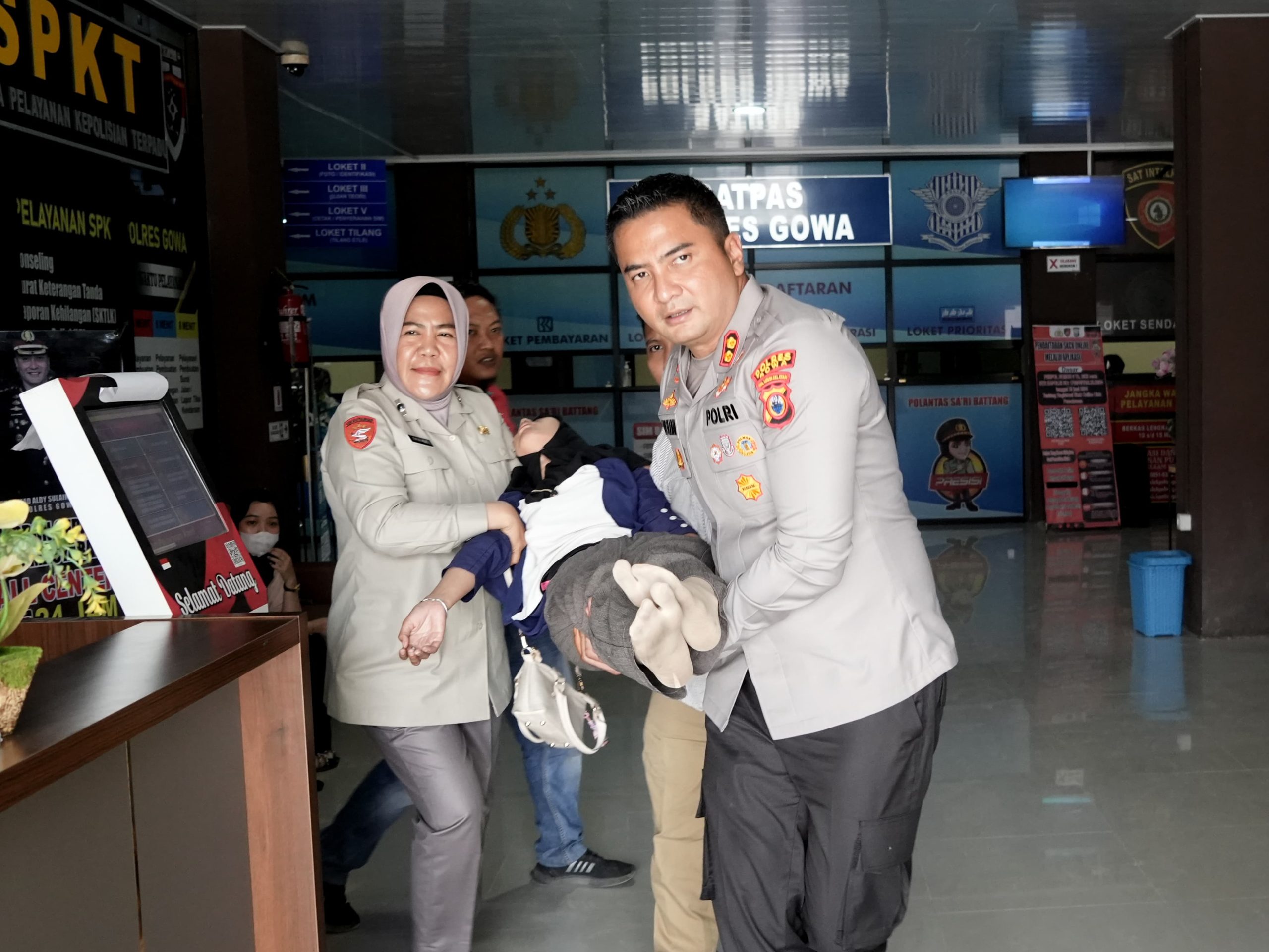 Bukti Kepedulian Polri..! Kapolres Gowa Spontan Bantu Gotong Wanita Pingsan di Gedung Pelayanan Terpadu