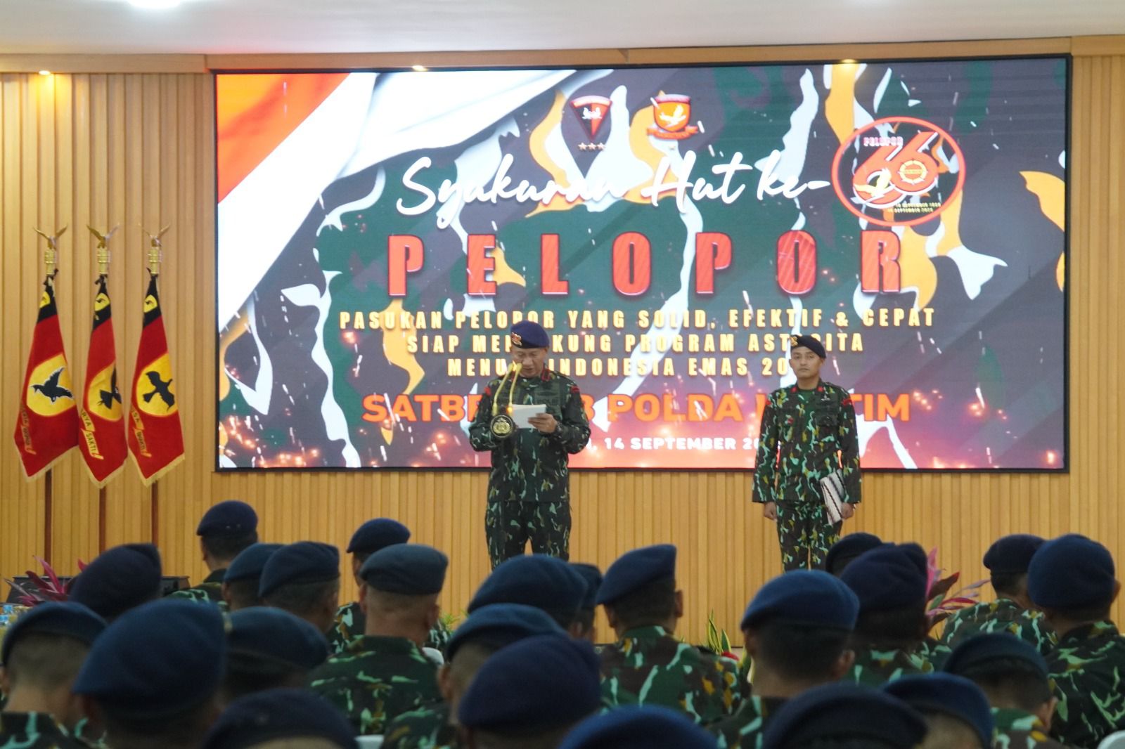 Dengan mengusung tema “Pasukan Pelopor yang Solid, Efektif & Cepat Siap Mendukung Program Astacita Menuju Indonesia Emas 2045”, kegiatan dihadiri oleh Komandan Satuan Brimob Polda Kaltim Kombes Pol Andy Rifai, S.I.K., M.H., para pejabat utama Sat Brimob serta jajaran personel Batalyon Pelopor dan Gegana Sat Brimob Polda Kaltim.