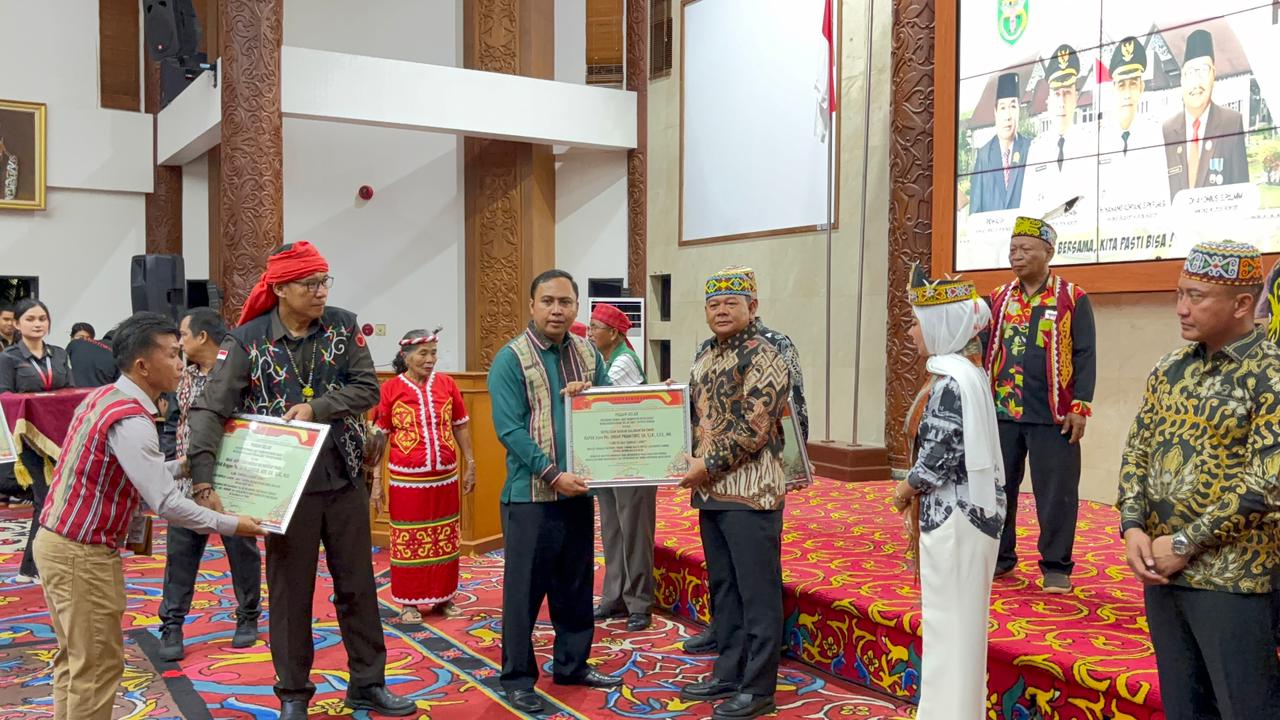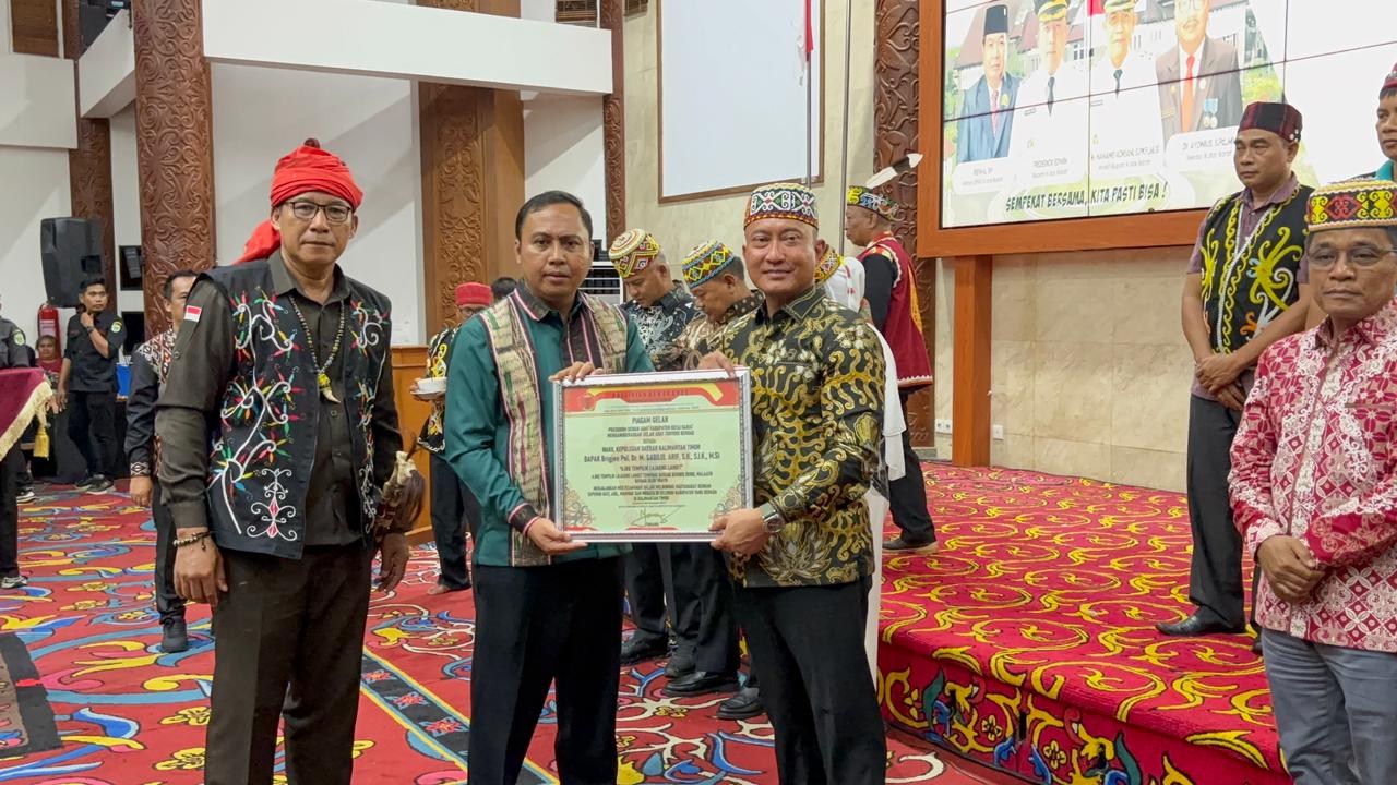 Gelar adat diserahkan langsung oleh Ketua Presidium Dewan Adat Kutai Barat, Yurang, disertai penyematan atribut adat berupa Sumpit, Mandau Tampilan, Tombak, dan Songkok Manik, yang melambangkan keberanian, tanggung jawab, dan kehormatan seorang pemimpin.