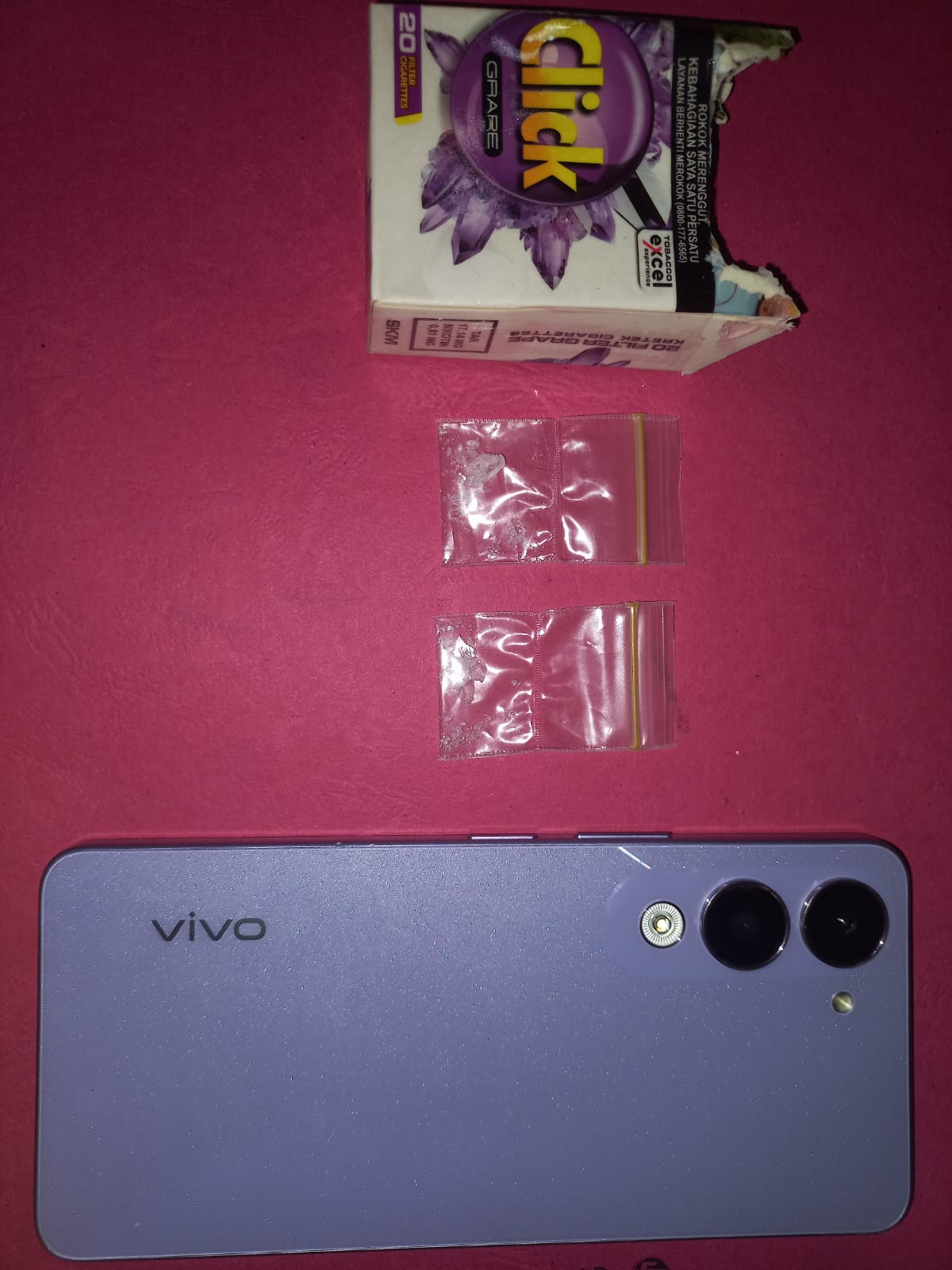 Dari hasil penimbangan, barang bukti sabu tersebut memiliki berat kotor sekitar 0,75 gram dan berat bersih sekitar 0,57 gram. Selain sabu, polisi juga mengamankan satu bungkus rokok merek Click warna ungu putih serta satu unit telepon genggam merek Vivo warna ungu yang diduga berkaitan dengan tindak pidana tersebut.