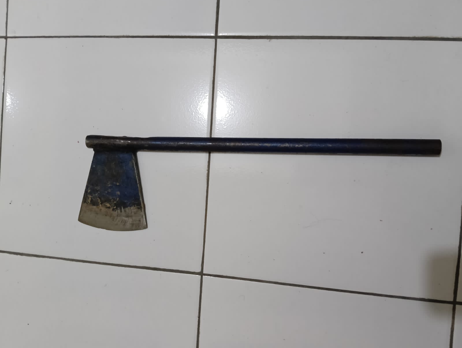Petugas yang menerima laporan segera melakukan serangkaian tindakan, di antaranya menerima laporan polisi, mengamankan terduga pelaku, memeriksa saksi-saksi, serta menyita barang bukti berupa 1 (satu) kapak sepanjang kurang lebih 60 cm berwarna biru.