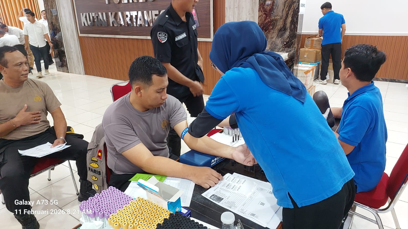 KUTAI KARTANEGARA – Polres Kutai Kartanegara (Kukar) melalui Seksi Kedokteran dan Kesehatan (Sidokkes) menggelar Pemeriksaan Kesehatan (Rikkes) Berkala Tahun Anggaran 2026 bagi personel, Rabu (11/2/2026). Kegiatan berlangsung di Ruang Catur Prasetya Lantai 3 Polres Kukar, bekerja sama dengan Laboratorium Tirta Medical Centre.