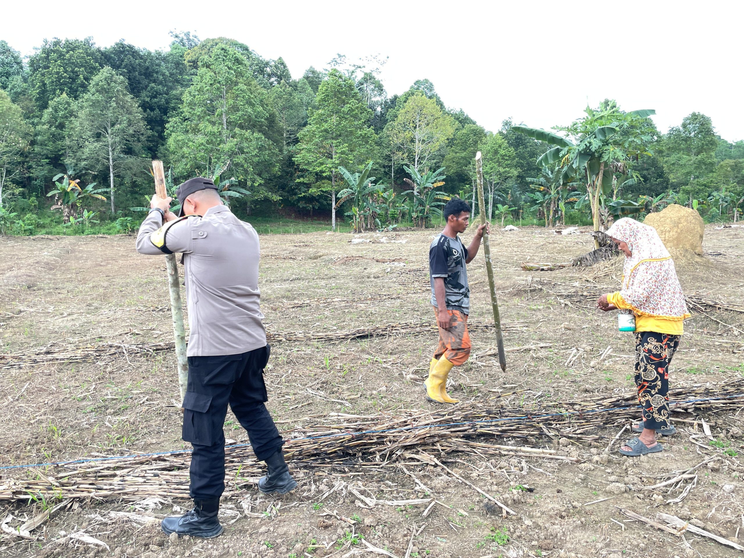 Pendampingan dilakukan di lahan seluas satu hektare milik Kelompok Tani Al Hidayah yang dikelola Sdr. Mare. Personel yang hadir dalam kegiatan tersebut yakni Aipda Erwin Efendi dan Bripka I Made B. Turut hadir Sdr. Adam selaku staf desa, Ketua RT 04 Sdr. Sudirman, serta para petani setempat.