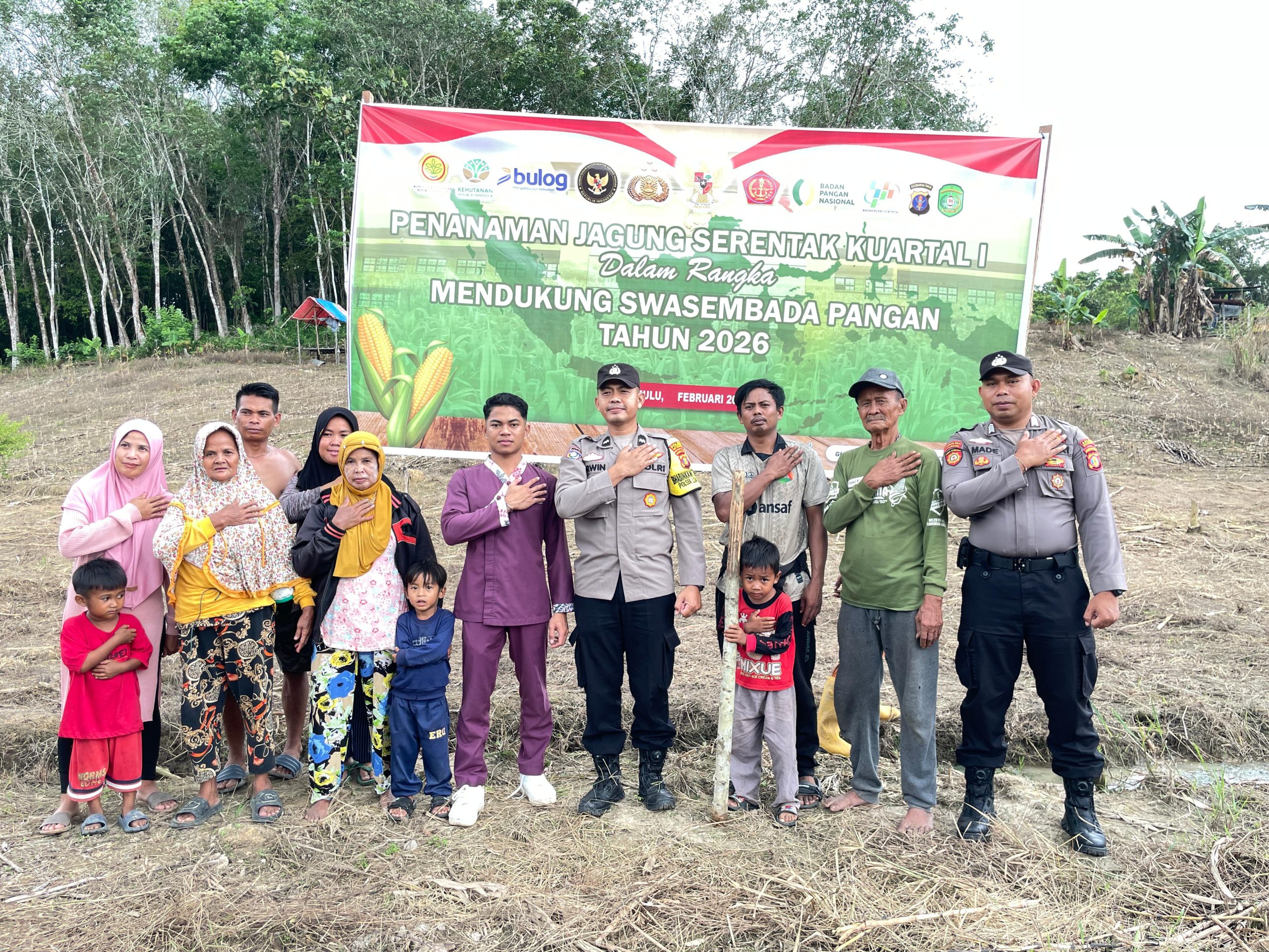 KUKAR – Polsek Loa Kulu melaksanakan pendampingan penanaman jagung hibrida sebagai bagian dari dukungan terhadap program ketahanan pangan nasional. Kegiatan berlangsung di Dusun Al Hidayah, Desa Jembayan Tengah, Kecamatan Loa Kulu, Kabupaten Kutai Kartanegara, Minggu (15/2/2026).