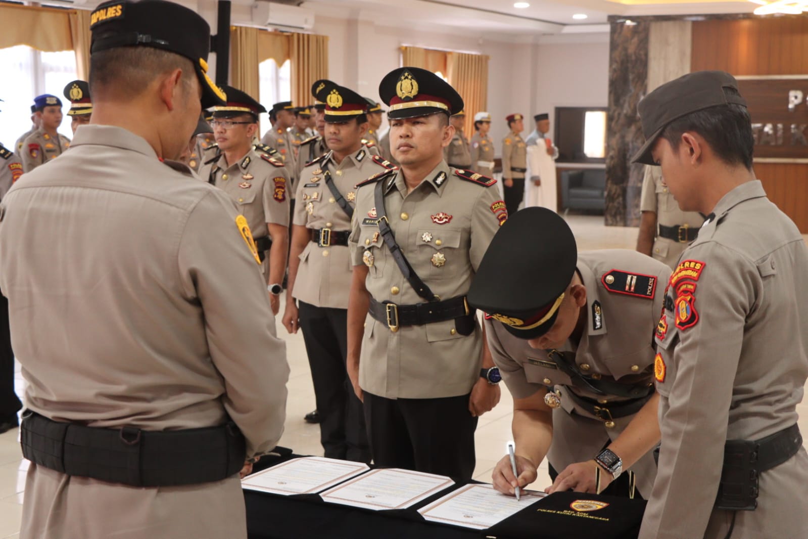 Dalam prosesi tersebut, jabatan Kabag SDM Polres Kukar diserahterimakan dari Kompol Zainal Arifin kepada Kompol Suwarno. Selain itu, rotasi juga terjadi di tingkat Kapolsek, yakni Kapolsek Tabang dari IPTU Aldino Subroto kepada IPTU Yohan Lihu, Kapolsek Muara Kaman dari IPTU Gede Wijaya kepada IPTU Herwin, Kapolsek Sanga-Sanga dari AKP Muhamad Zulhijah kepada IPTU Wahid, serta Kapolsek Muara Muntai dari IPTU Wahid kepada IPTU Jaelani.