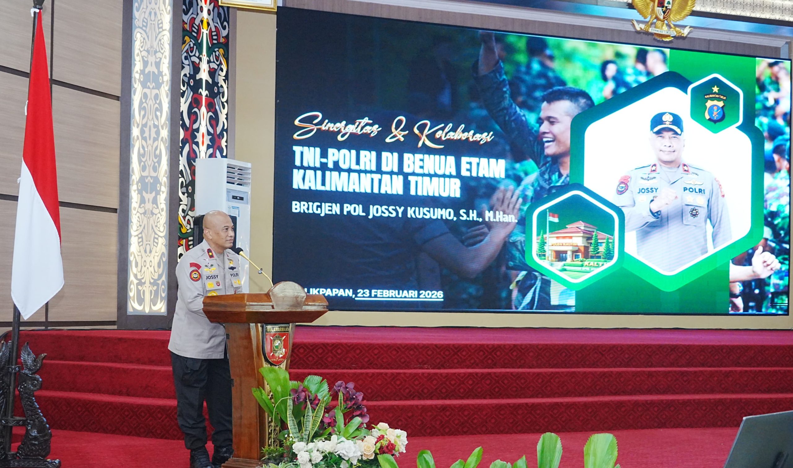 BALIKPAPAN – Momentum penguatan sinergitas TNI–Polri kembali terlihat dalam Rapat Pimpinan (Rapim) Kodam VI/Mulawarman Tahun 2026 yang digelar pada Senin (23/2/2026) pukul 08.00 WITA di Aula Kodam VI/Mulawarman. Wakapolda Kalimantan Timur, Adrianto Jossy Kusumo, turut hadir bersama jajaran pimpinan daerah.