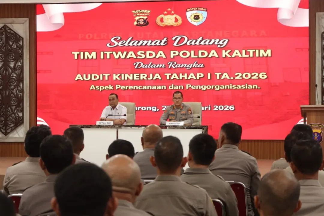 KUTAI KARTANEGARA – Polres Kutai Kartanegara (Kukar) menerima kunjungan Tim Inspektorat Pengawasan Daerah (Itwasda) Polda Kalimantan Timur dalam rangka pelaksanaan Audit Kinerja Tahap I Tahun Anggaran 2026. Kegiatan yang berlangsung pada Senin (23/2/2026) pukul 10.10 WITA itu digelar di Ruang Catur Prasetya, Lantai III Mako Polres Kutai Kartanegara.