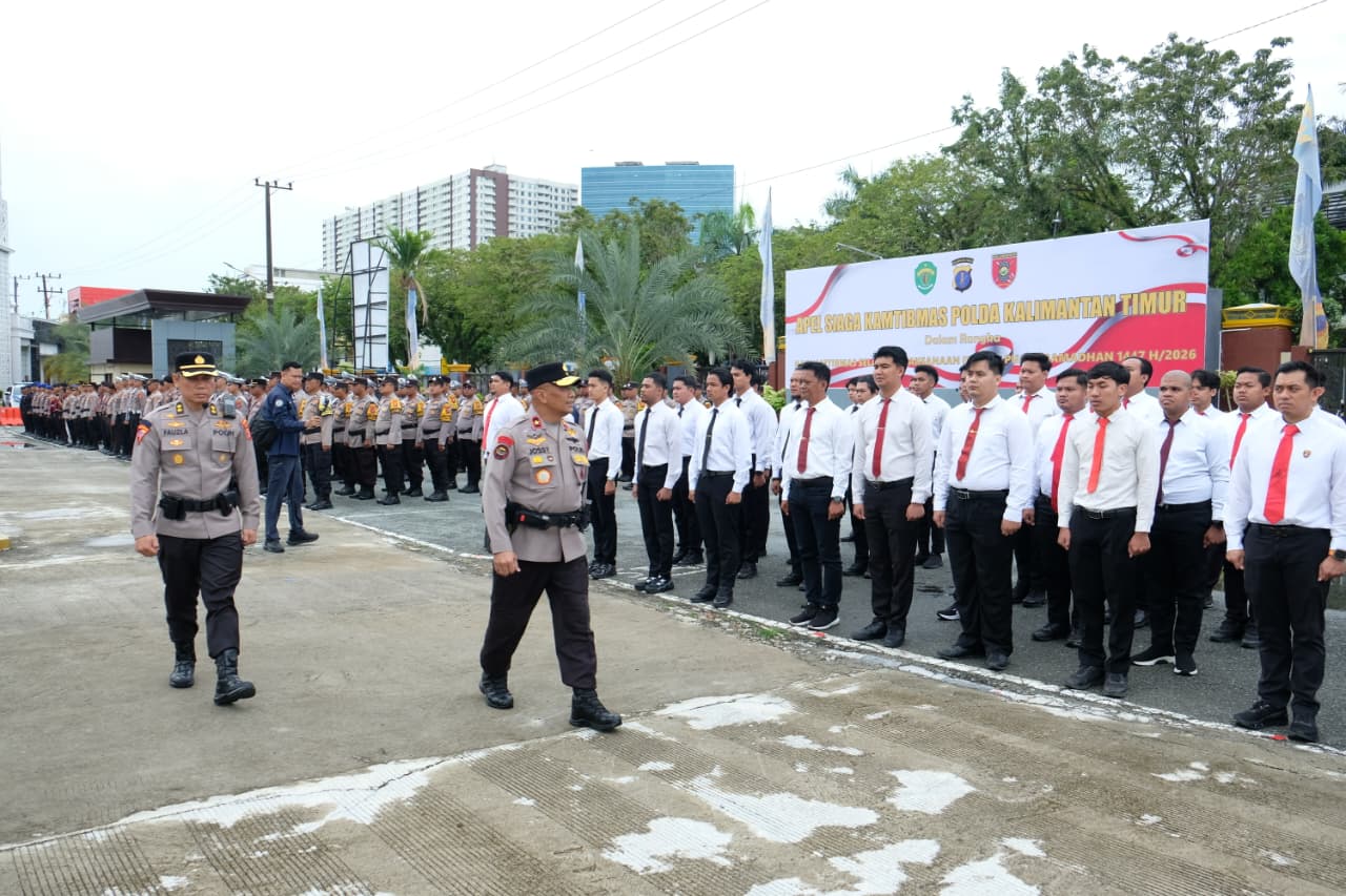 BALIKPAPAN – Wakapolda Kalimantan Timur, Brigjen Pol Adrianto Jossy Kusumo, memimpin Apel Siaga Kamtibmas dalam rangka menjaga stabilitas keamanan selama Ramadan 1447 Hijriah/2026 di halaman Mako Polresta Balikpapan, Rabu (25/2/2026).