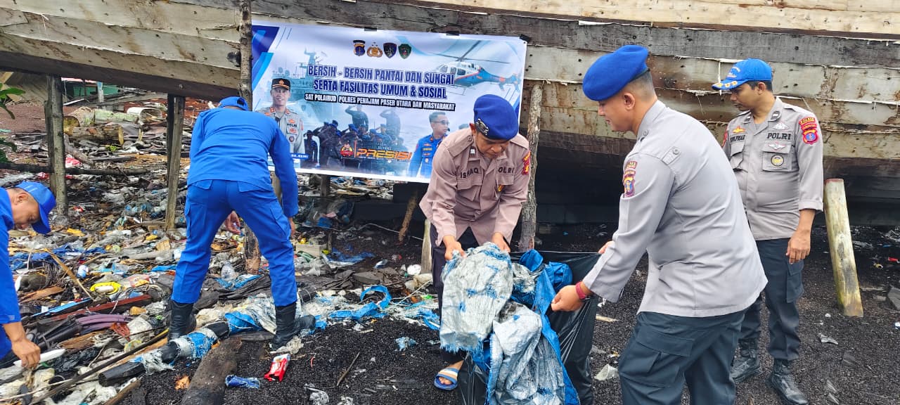 PPU – Kepedulian terhadap kebersihan dan kelestarian lingkungan kembali dibuktikan oleh Polres Penajam Paser Utara melalui jajaran Satuan Polisi Perairan dan Udara (Sat Polairud). Pada Jumat (27/2/2026), personel turun langsung melaksanakan aksi bersih pantai dan sungai di wilayah pesisir Desa Kayu Api, Kecamatan Penajam, Kabupaten Penajam Paser Utara.