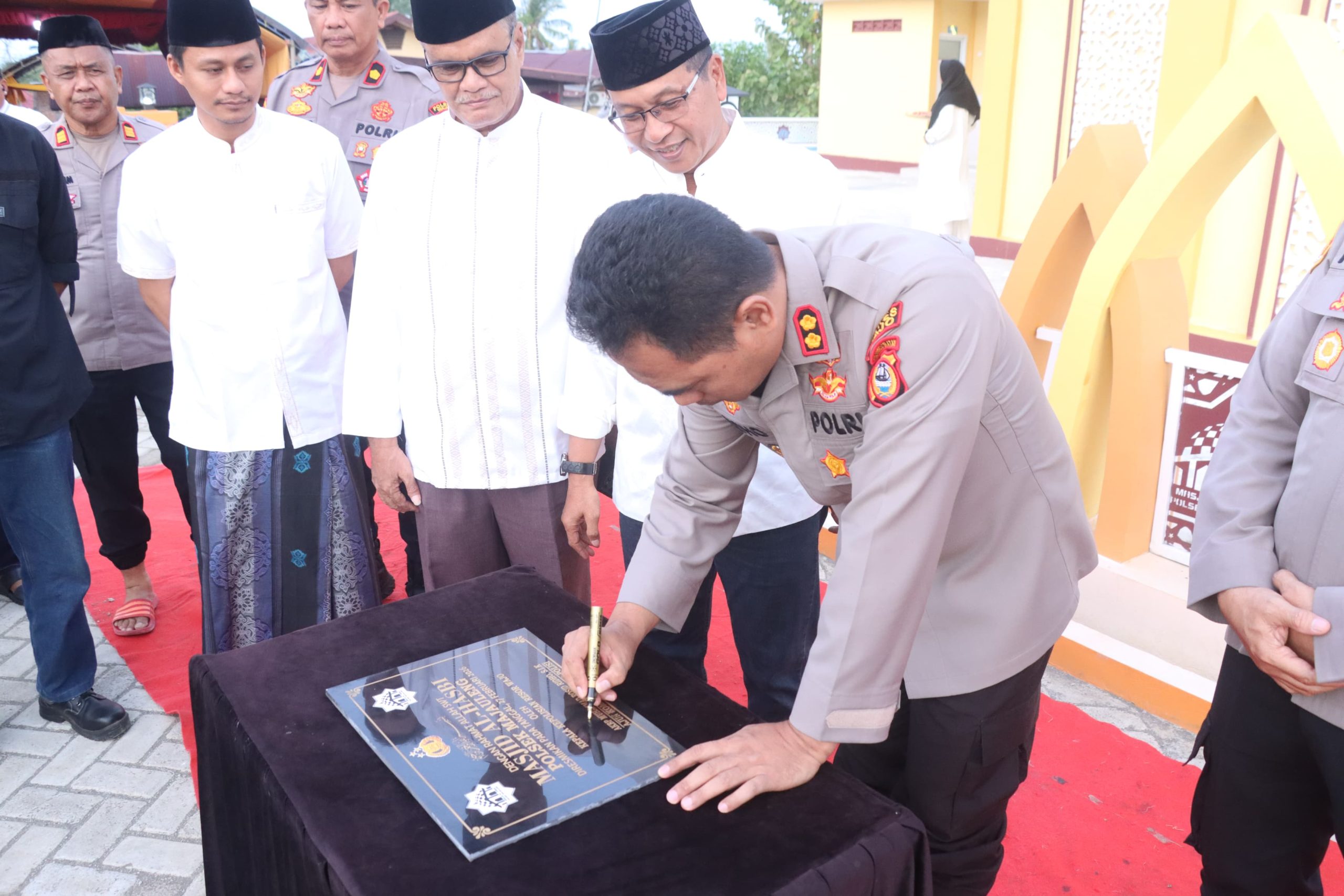 Prosesi peresmian ditandai dengan pengguntingan pita serta penandatanganan prasasti oleh Kapolres Wajo. Momen tersebut turut disaksikan Wakil Bupati Wajo Baso Rahmanuddin, unsur Forkopimcam, tokoh agama, tokoh masyarakat, serta sekitar 200 jamaah yang hadir.