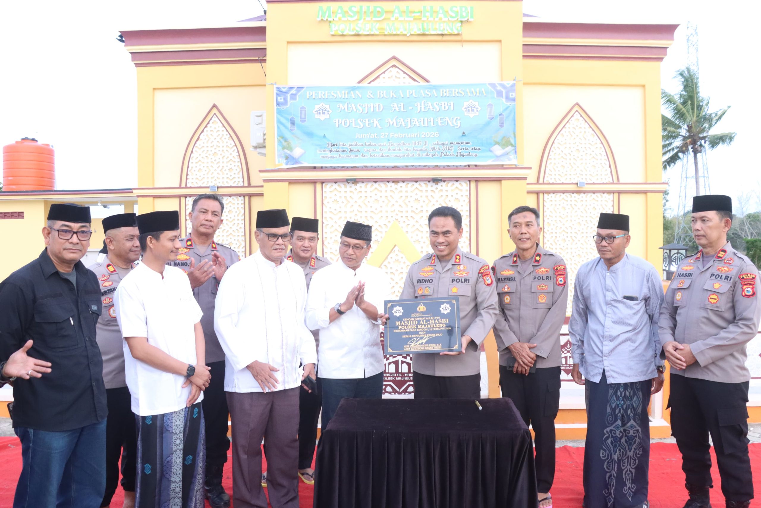 WAJO — Kapolres Wajo AKBP Muhammad Rosid Ridho meresmikan Masjid Al-Hasbi yang berada di lingkungan Polsek Majauleng, Jumat (27/2/2026) sore. Peresmian dirangkaikan dengan buka puasa bersama dan berlangsung khidmat di pelataran masjid hingga menjelang Magrib.