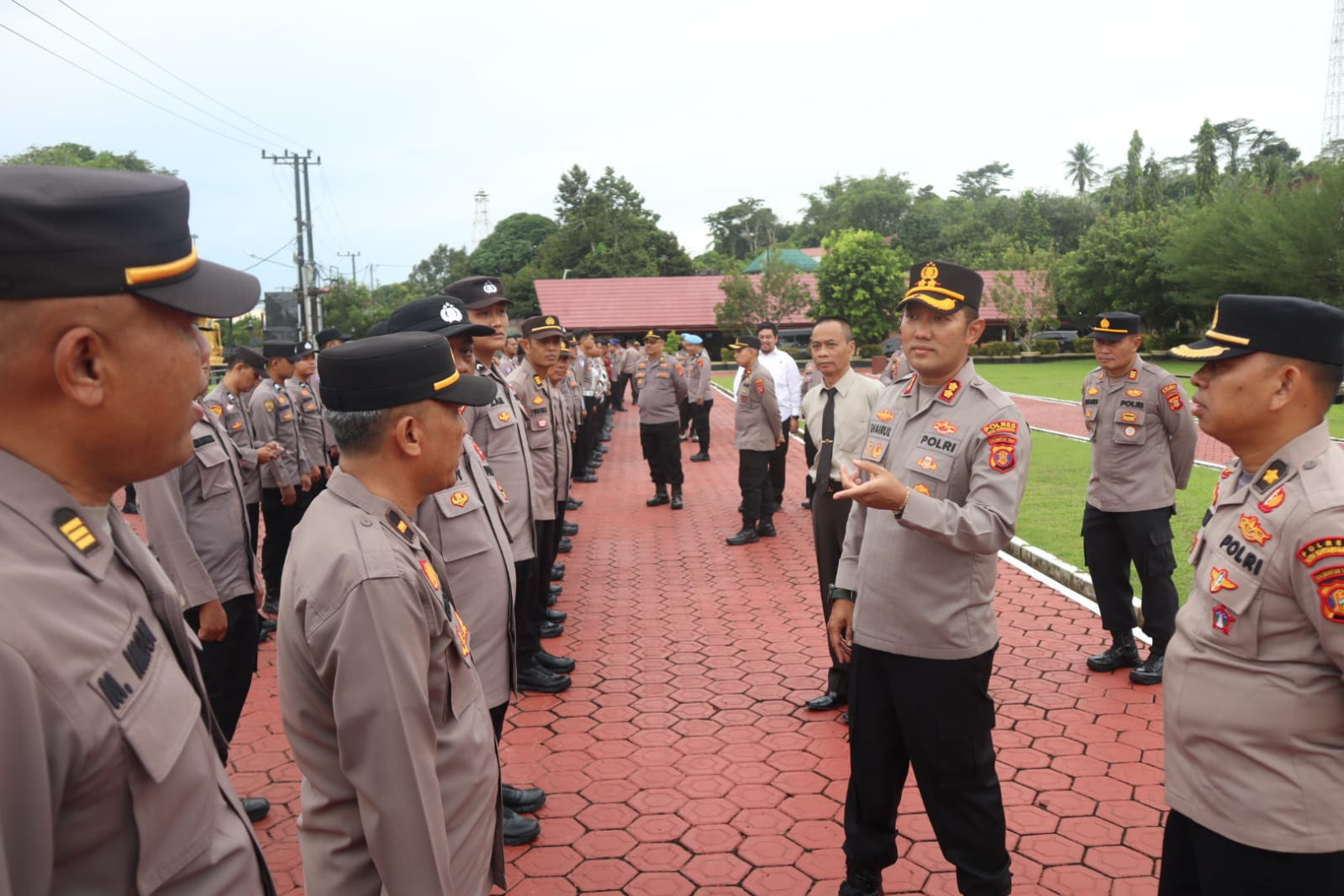 “Seragam ini adalah kehormatan. Jangan sampai kita sendiri yang menodainya. Kalau dari tampilan saja tidak siap, bagaimana masyarakat bisa percaya pada pelayanan kita?” tegas AKBP Khairul Basyar di hadapan barisan personel.