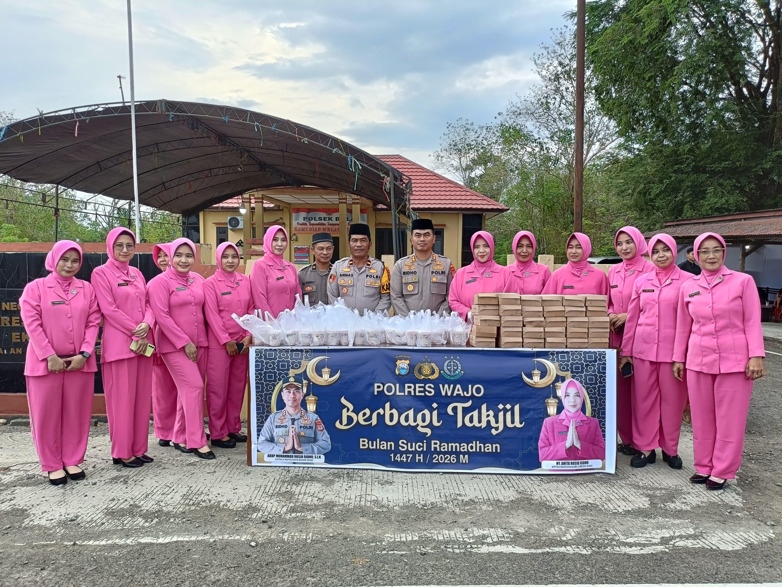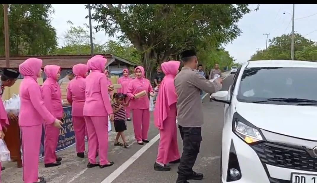 Dalam kegiatan tersebut, personel kepolisian bersama para pengurus Bhayangkari membagikan takjil dan paket Ramadan kepada masyarakat sebagai bentuk kepedulian serta upaya mempererat hubungan antara Polri dan masyarakat di bulan suci Ramadan.