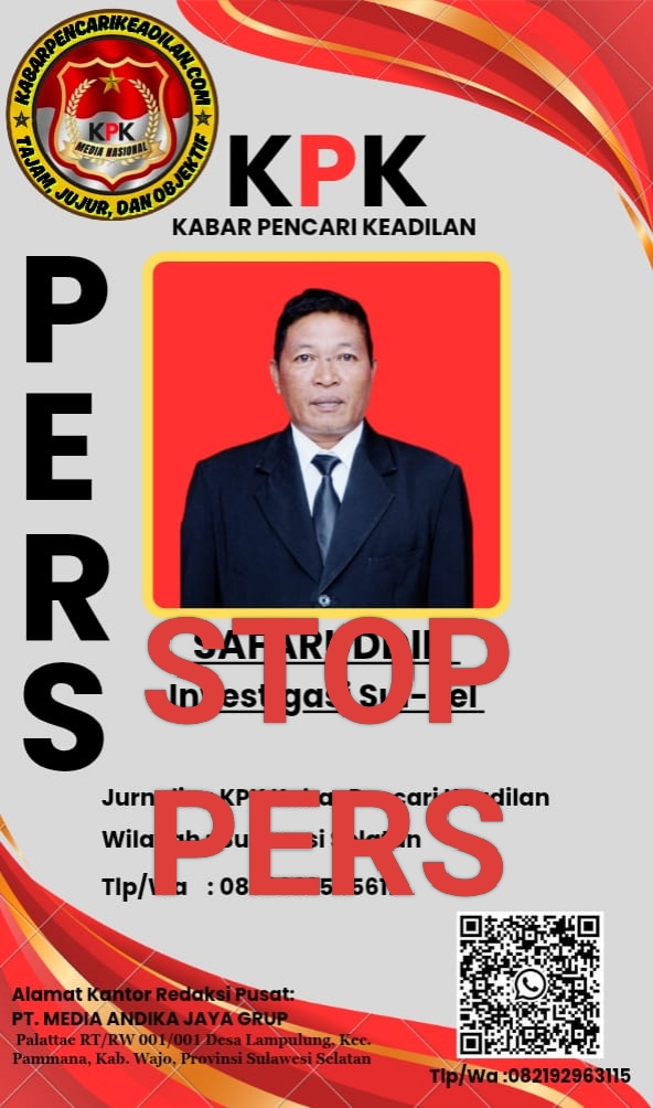 SULAWESI SELATAN — 19 Maret 2026,-  Safaruddin yang sebelumnya mengaku menjabat sebagai investigasi di Media Kabar Pencari Keadilan resmi dihentikan (di-stop) dari aktivitas pers.