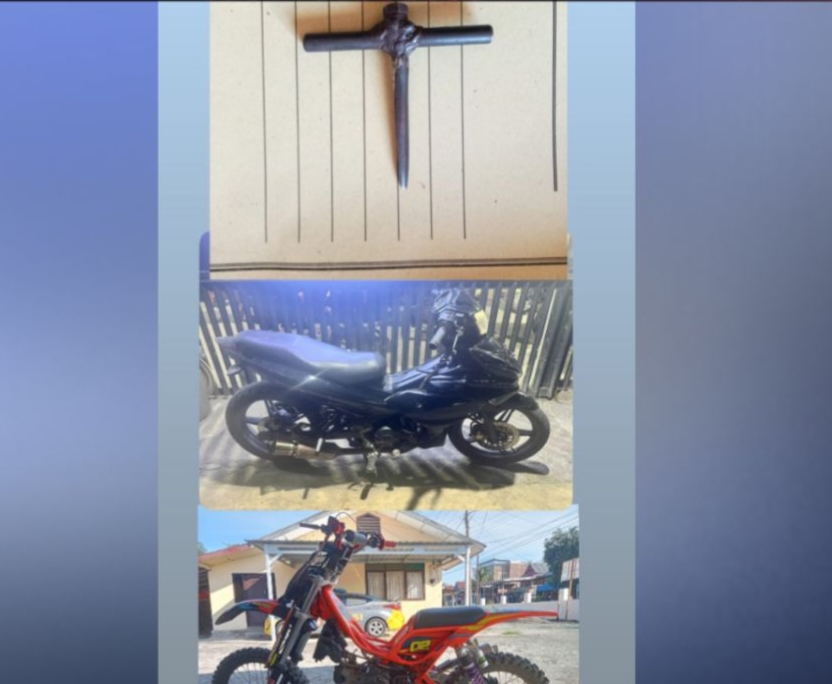 Polisi turut mengamankan sejumlah barang bukti, di antaranya satu unit motor ojek gabah warna merah, satu unit sepeda motor Yamaha Jupiter MX King 150, serta satu buah kunci T yang digunakan pelaku.
