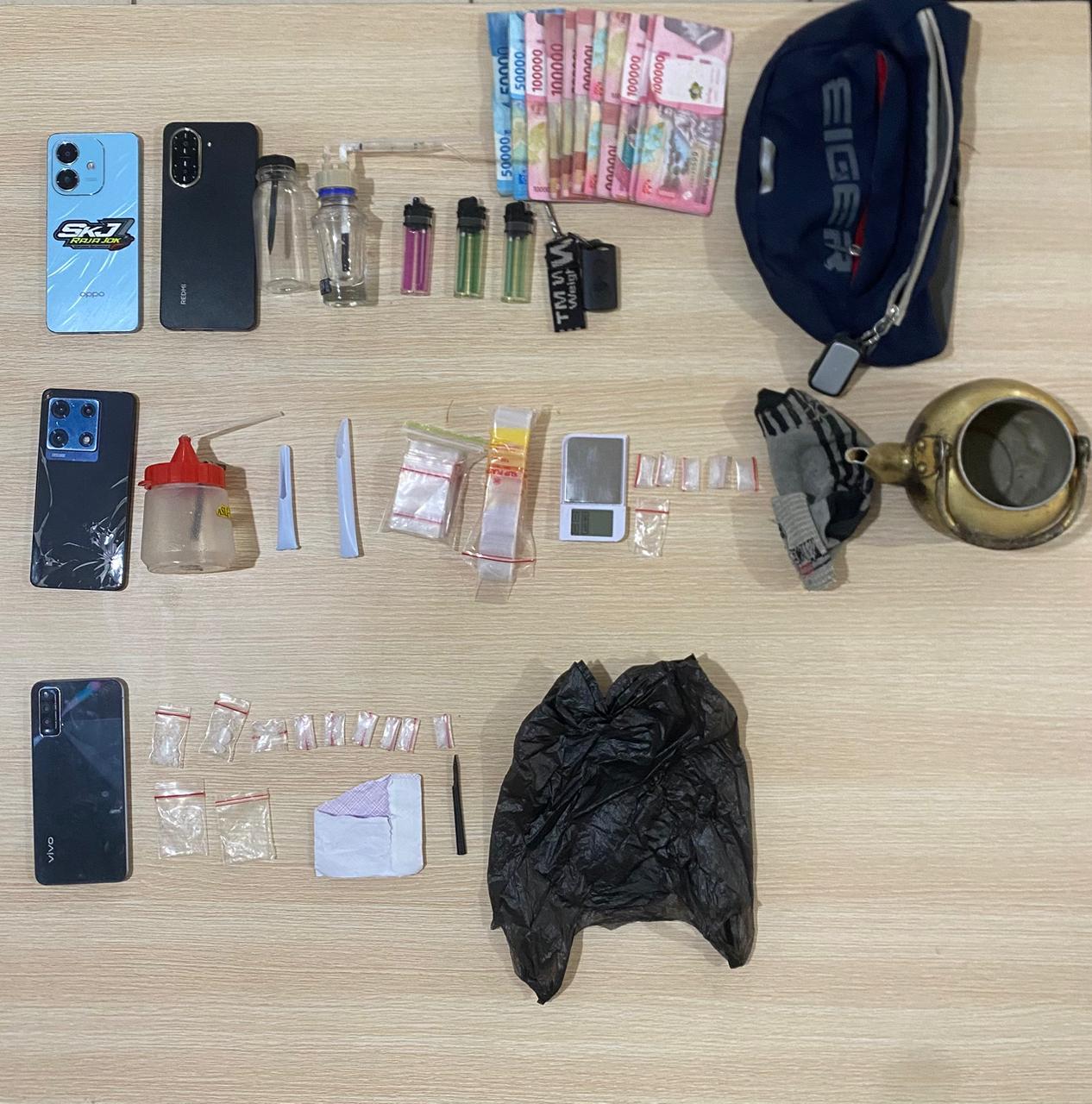 Penggeledahan terhadap UM dan kontrakannya mengungkap bukti kuat: alat hisap sabu, pipet kaca berisi narkotika, serta uang tunai Rp11 juta yang diduga hasil transaksi haram.