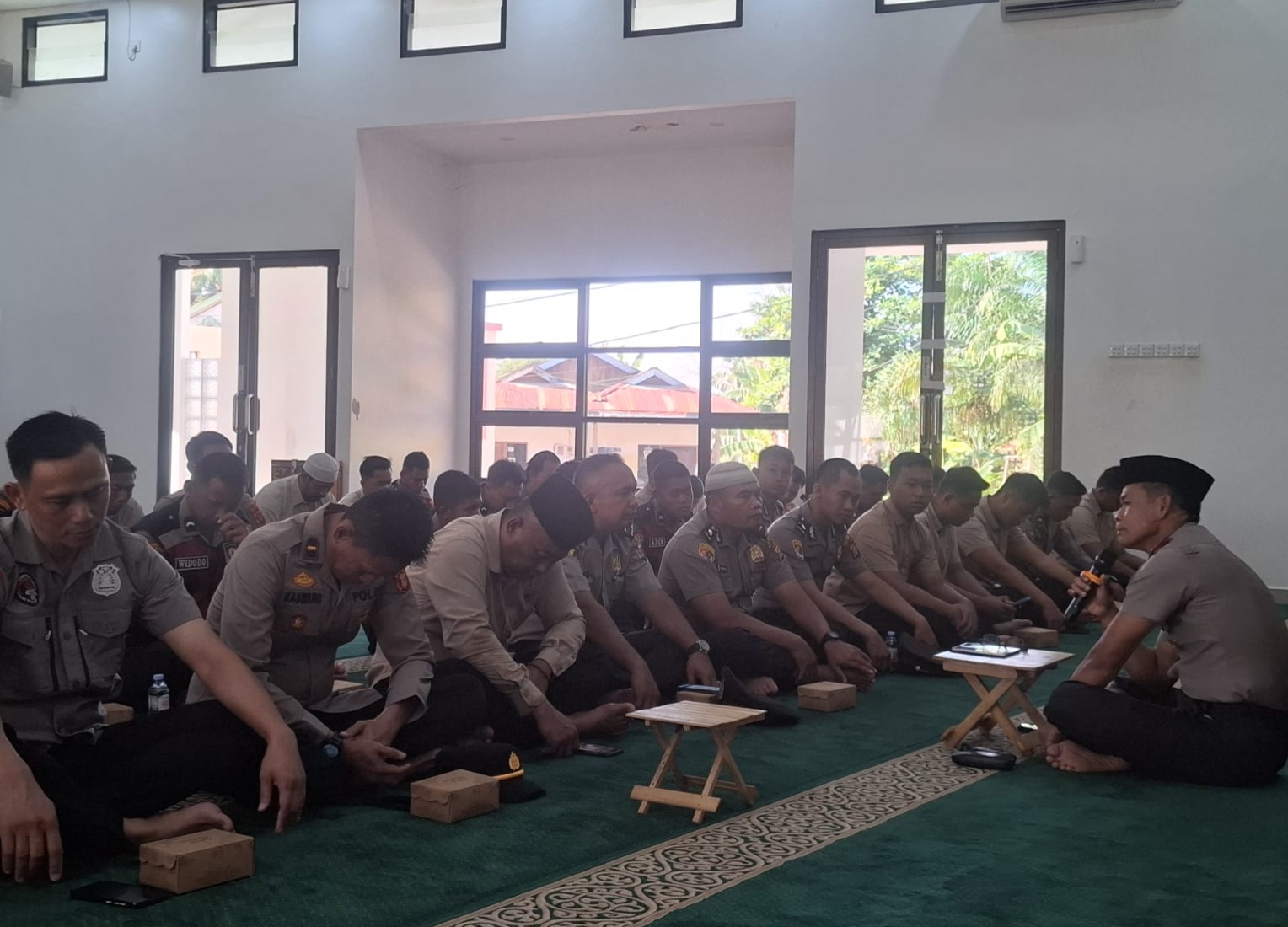 Dalam suasana khidmat dan penuh kekhusyukan, para personel Muslim mengikuti rangkaian Binrohtal yang secara rutin digelar sebagai sarana memperdalam nilai-nilai keagamaan sekaligus memperkuat fondasi moral dalam pelaksanaan tugas kepolisian.